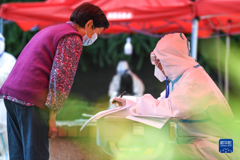 9月5日,医护人员在贵阳市云岩区大营路街道中天花园社区为市民做核酸检测信息登记。