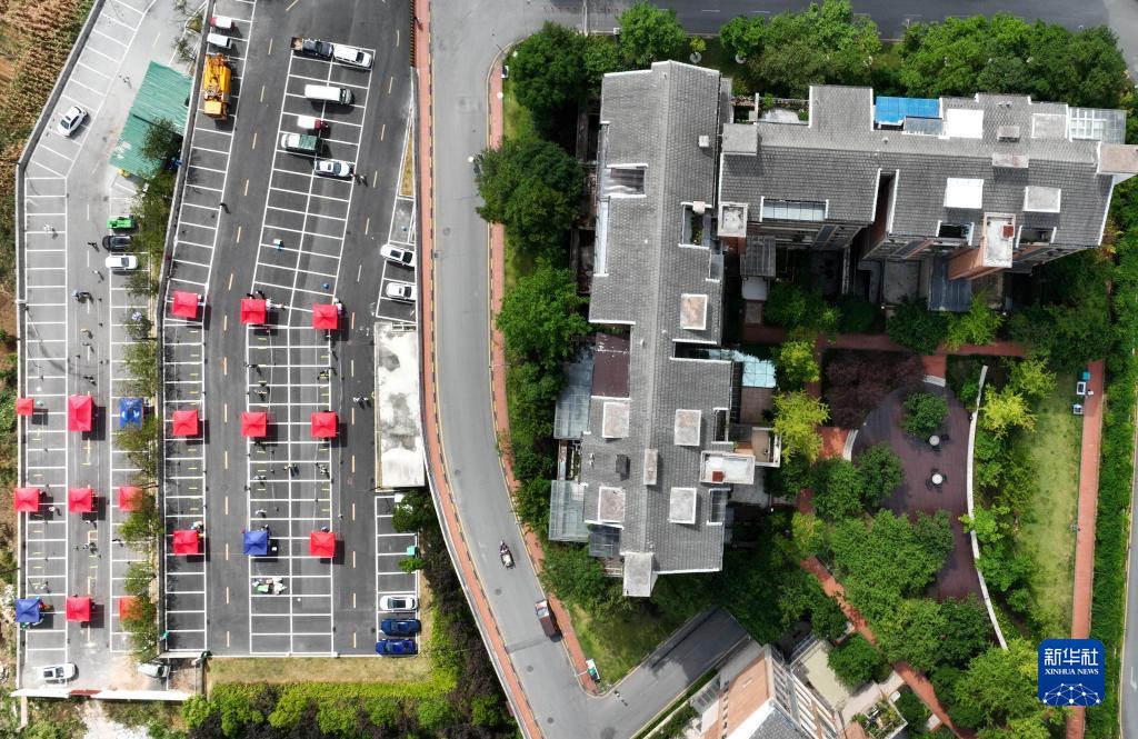 这是9月5日拍摄的贵阳市乌当区新光路街道一居民小区核酸筛查点现场(无人机照片)。