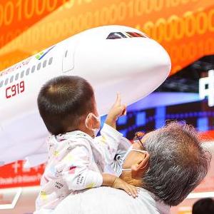 9月5日,观众在服贸会国家会议中心参观中国服务贸易成就展。新华社记者郝昭摄