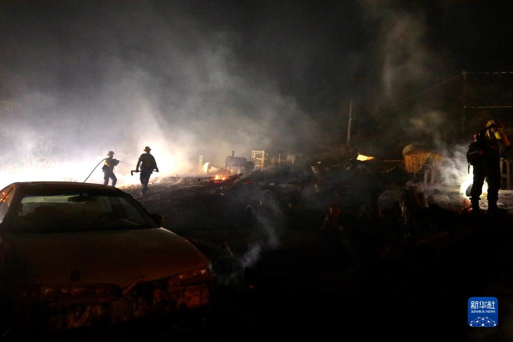 9月6日,消防员在美国加利福尼亚州里弗赛德县一个社区灭火。新华社发
