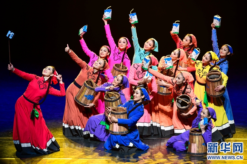 9月6日,演员在专场演出中表演群舞《新时代挤奶员》。新华网发(王正 摄)