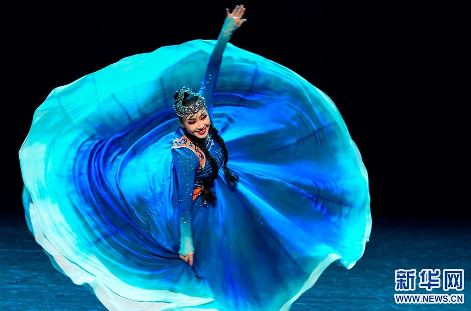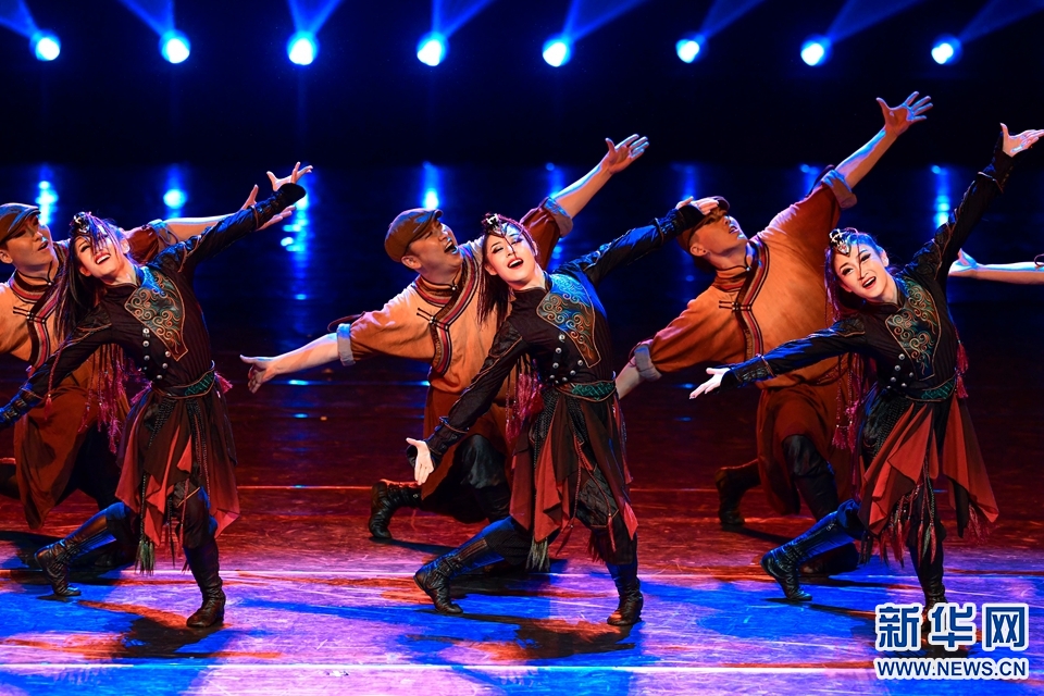 9月6日,演员在专场演出中表演群舞《马玲摇响幸福歌》。新华网发(王正 摄)