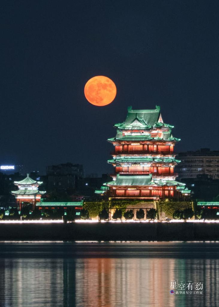 江西省天文爱好者沈霖2021年9月21日(农历八月十五)在南昌滕王阁拍摄的中秋月。(本人供图)