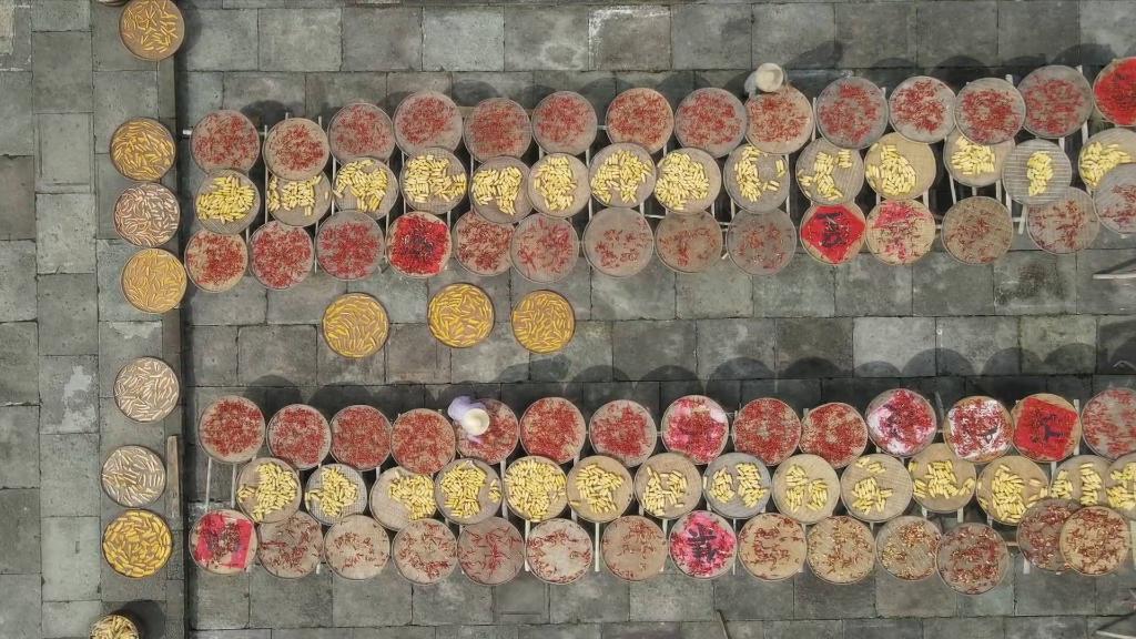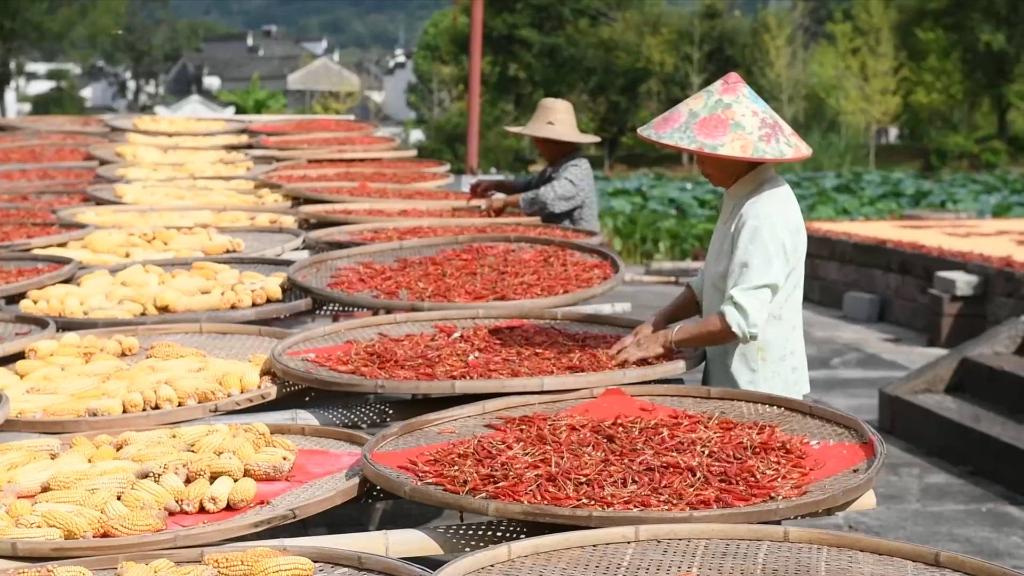 在安徽省黄山市呈坎村,当地村民会用一种特别的方式来庆祝丰收——“晒秋”。