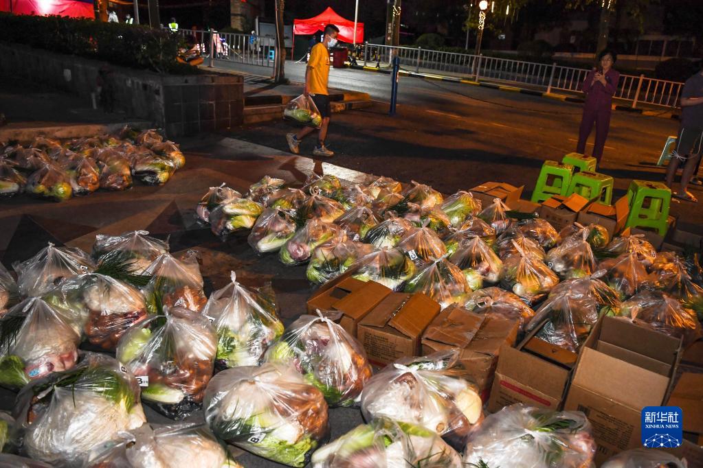 9月7日晚,在贵阳市云岩区一居民小区,保供企业员工在给市民配送基本生活物品。