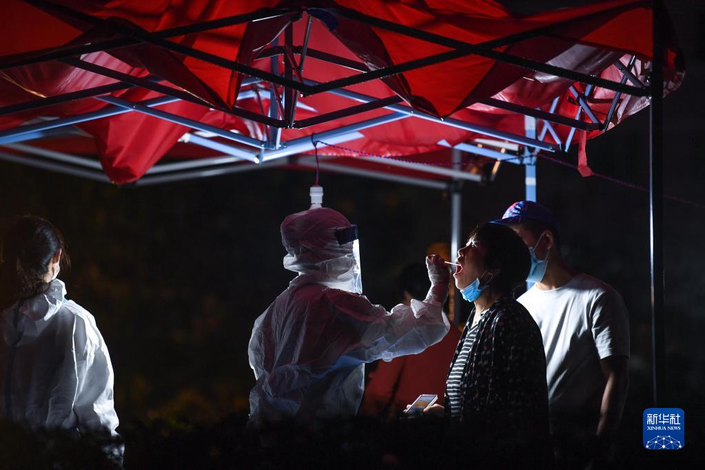 9月3日晚,医护人员在贵阳市云岩区大营路街道中天花园社区给市民做核酸检测。
