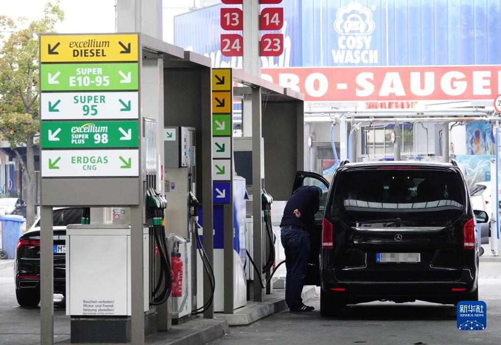 9月8日,一名男子在德国柏林的加油站给汽车加油。