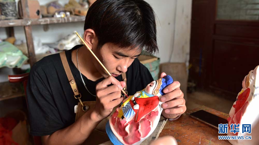 图为泊头市“三痴斋”泥塑第五代传承人在绘制“兔儿爷”泥塑作品。田志锋 摄