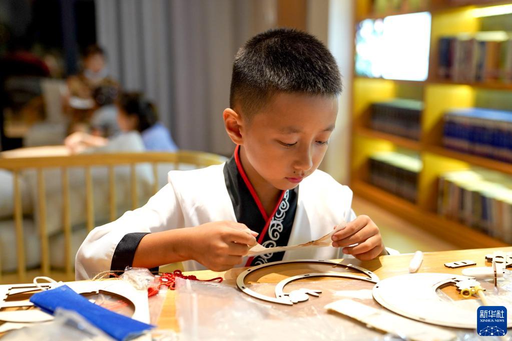 临近中秋佳节,在江西省南昌市高新区的一家图书馆,市民身着汉服体验花灯制作、纸上刺绣等,在古风古韵中迎接中秋佳节。