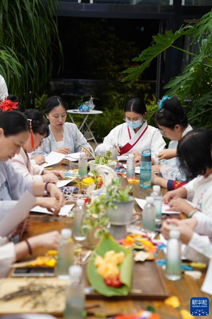 临近中秋佳节,在江西省南昌市高新区的一家图书馆,市民身着汉服体验花灯制作、纸上刺绣等,在古风古韵中迎接中秋佳节。