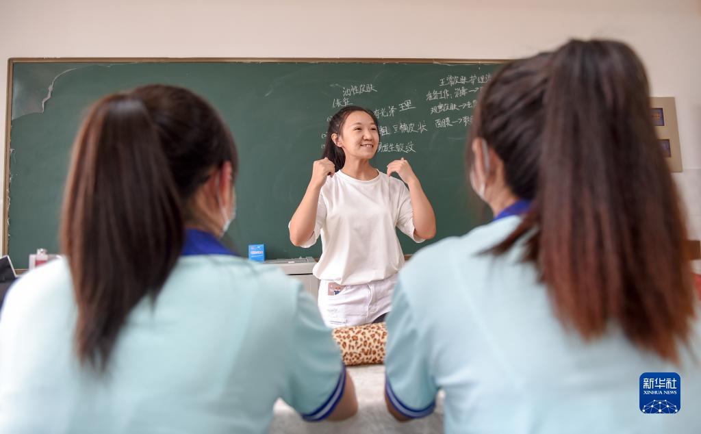 渐渐地,学生们发现,每次上课前,黑板上早已写满了当日课程的板书。大家这才知道,王老师总是提前20分钟来到教室,一笔一划将书本上的知识重点“搬上”黑板。为了让授课更有吸引力,王雅妮从网上学习各种最新美容教程,学会后精心写入板书,不同颜色代表不同难度,在一些特别要注意的内容旁边还会画上星星或笑脸。
