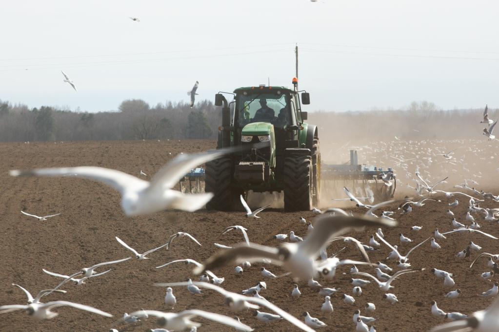 2021年4月15日,农民在俄罗斯列宁格勒州一农场内播种春小麦。新华社发(莫京娜 摄)