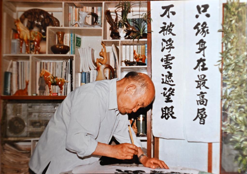 这是赵慕平早年在书桌前工作的留影(翻拍照片)。新华社记者 李然 摄