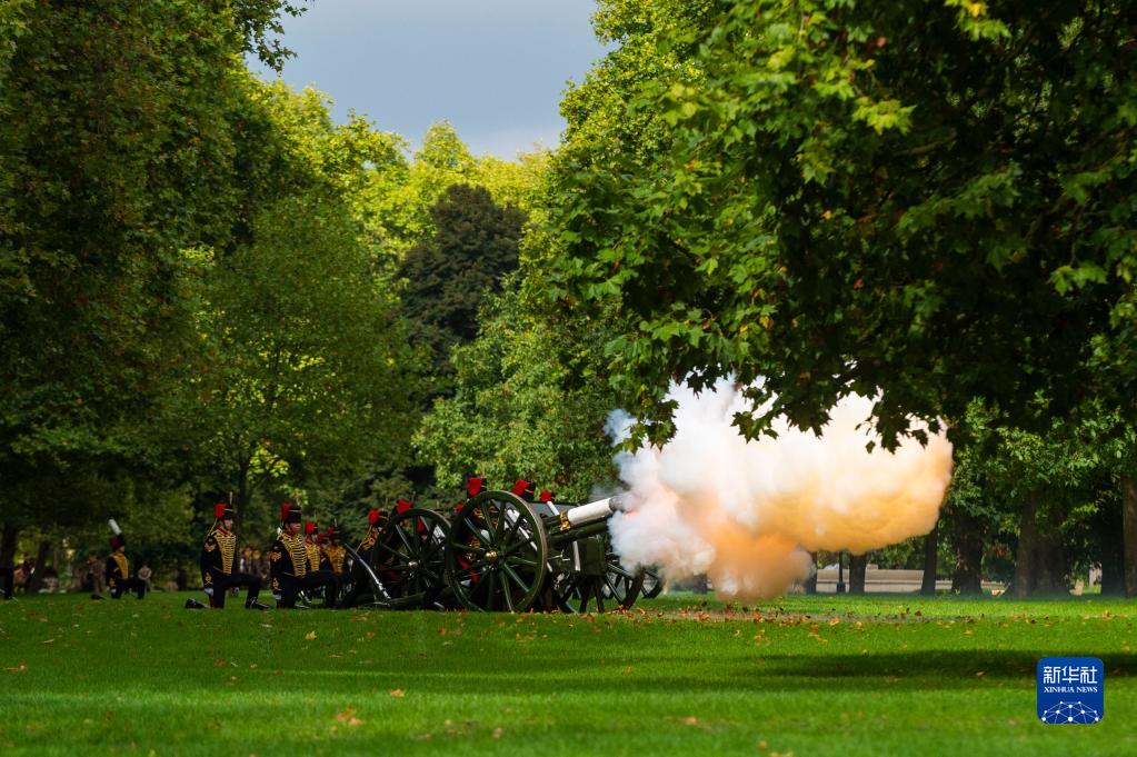 9月9日,士兵在英国伦敦海德公园鸣放礼炮悼念已故女王伊丽莎白二世。