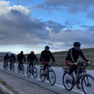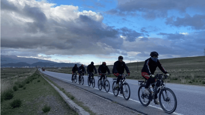 (兰会云带领孩子们骑行)