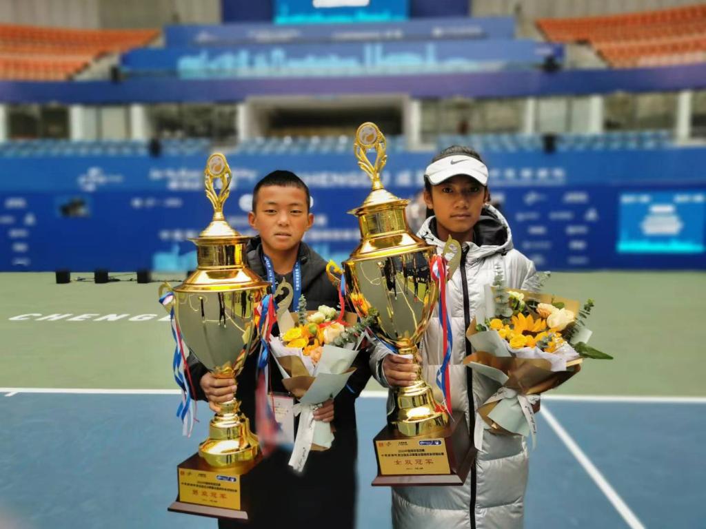 经过激烈比赛,他最终夺得U14组男单冠军