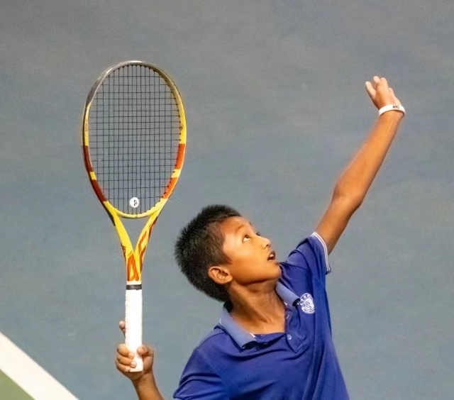 网球少年在赛场上挥汗如雨。受访者供图