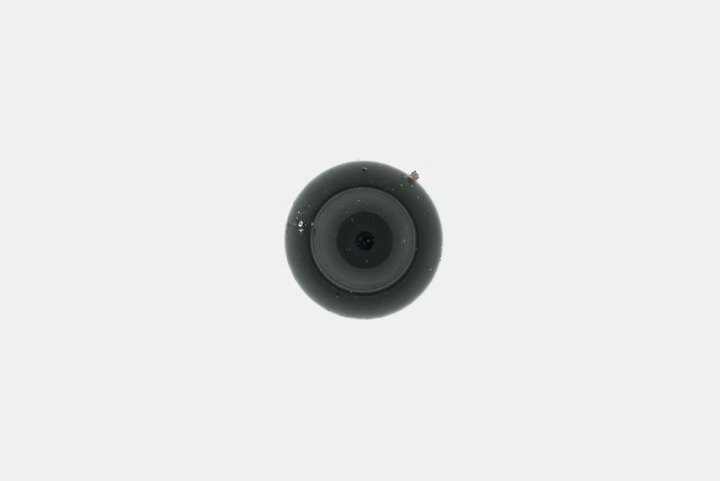 2月20日拍摄的嫦娥五号月壤中一颗直径只有0.5毫米的玻璃珠的显微照片,玻璃珠表面映出镜头的影像,像只圆圆的眼睛。(中科院地质与地球物理研究所供图)