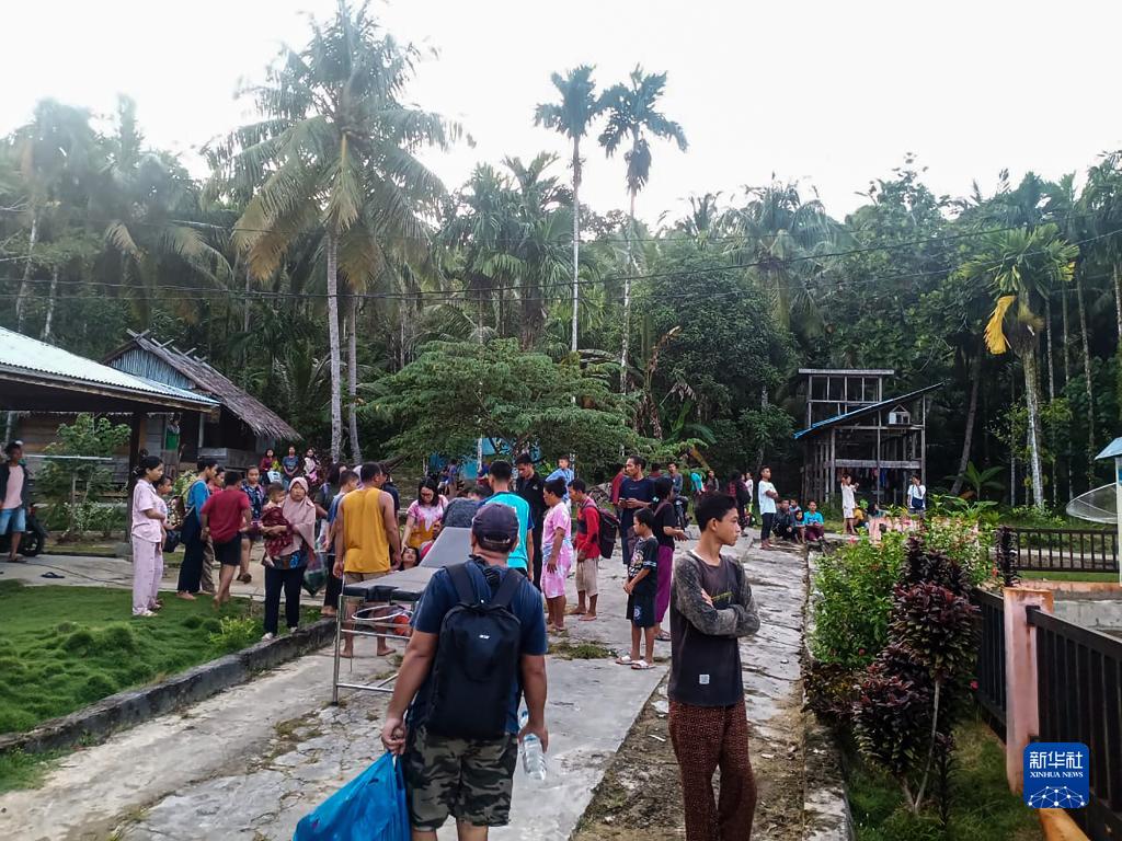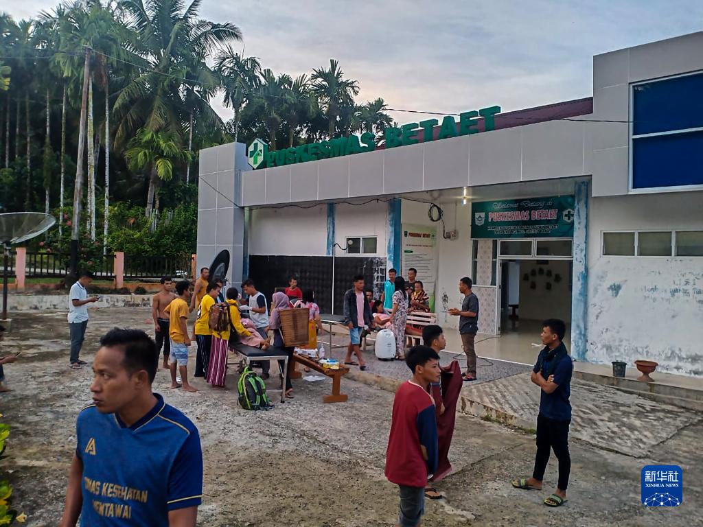 9月11日,人们站在印尼西苏门答腊省明打威群岛一处医疗机构外(手机拍摄)。新华社发(印尼国家灾难管理局供图)