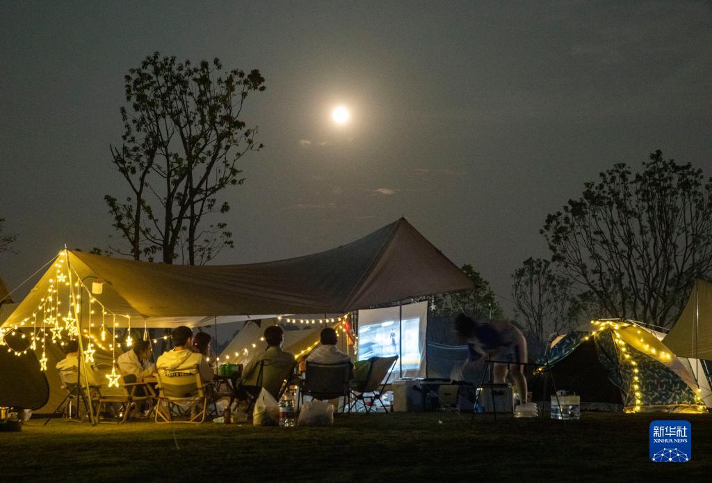 9月10日晚,游客在重庆市南川区黎香湖星空露营基地露营。中秋假期期间,人们以各种各样的方式走出户外,亲近自然,乐享假日。新华社发(瞿明斌 摄)