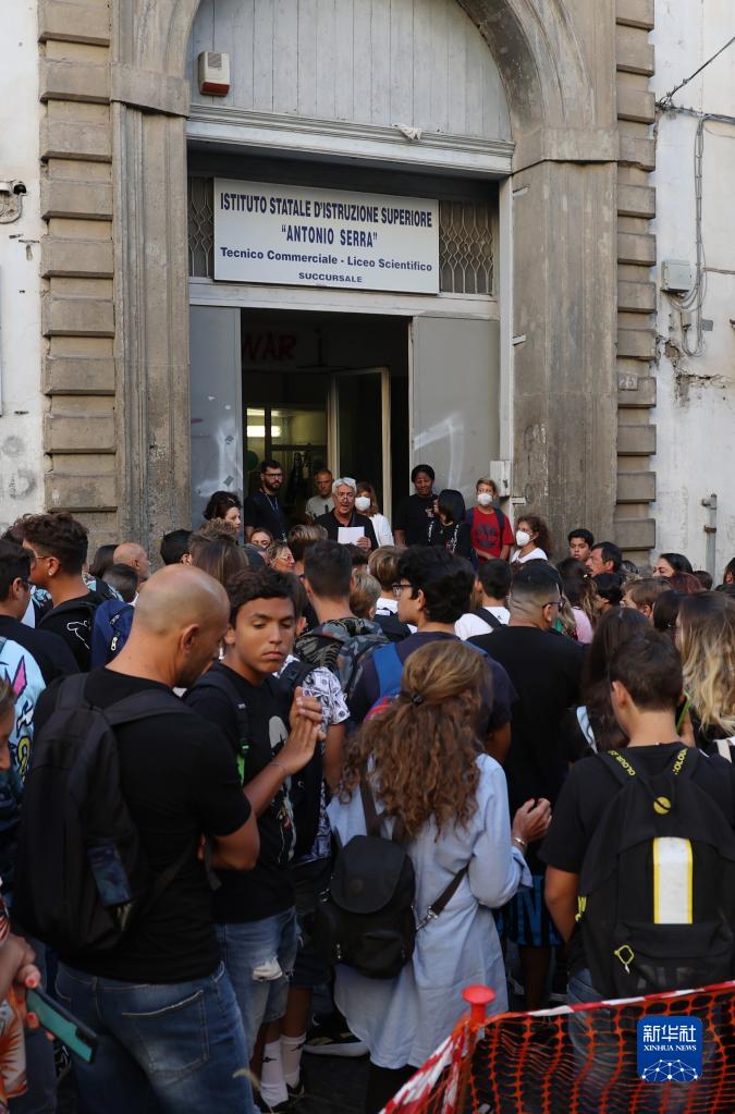 9月12日,意大利那不勒斯一所中学的学生等待进入校园。