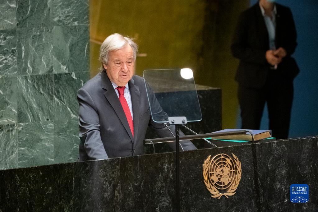 9月12日,在位于纽约的联合国总部,联合国秘书长古特雷斯在第76届联合国大会闭幕会上发表讲话。