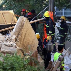 9月13日,救援人员在约旦首都安曼的居民楼倒塌事故现场工作。新华社发(穆罕默德·阿布·古什 摄)