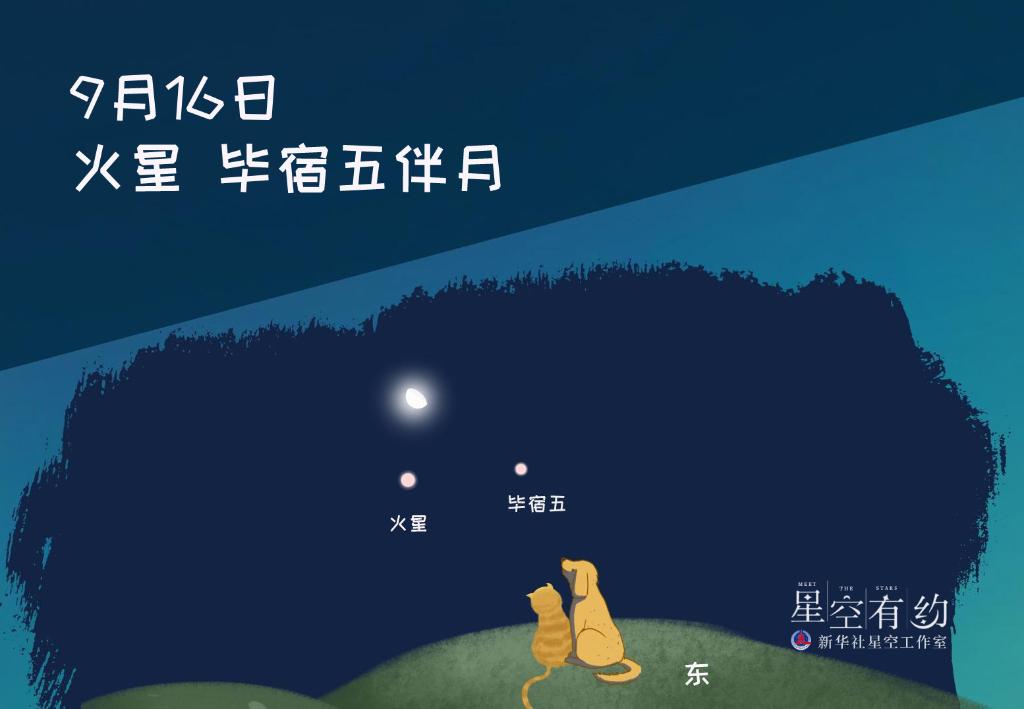 新华社天津9月14日电(记者周润健)天文科普专家介绍,9月16日晚,橘红色行星——火星将“靠近”另一颗橘红色恒星——毕宿五,与一轮亏凸月上演“双红星伴月”,届时只要天气晴好,我国各地感兴趣的公众凭借肉眼就能目睹到这奇妙的一幕。