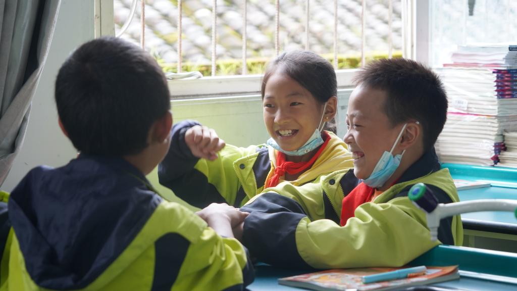 9月14日,学生在泸定县得妥镇中心小学做游戏。新华社记者 尹恒 摄