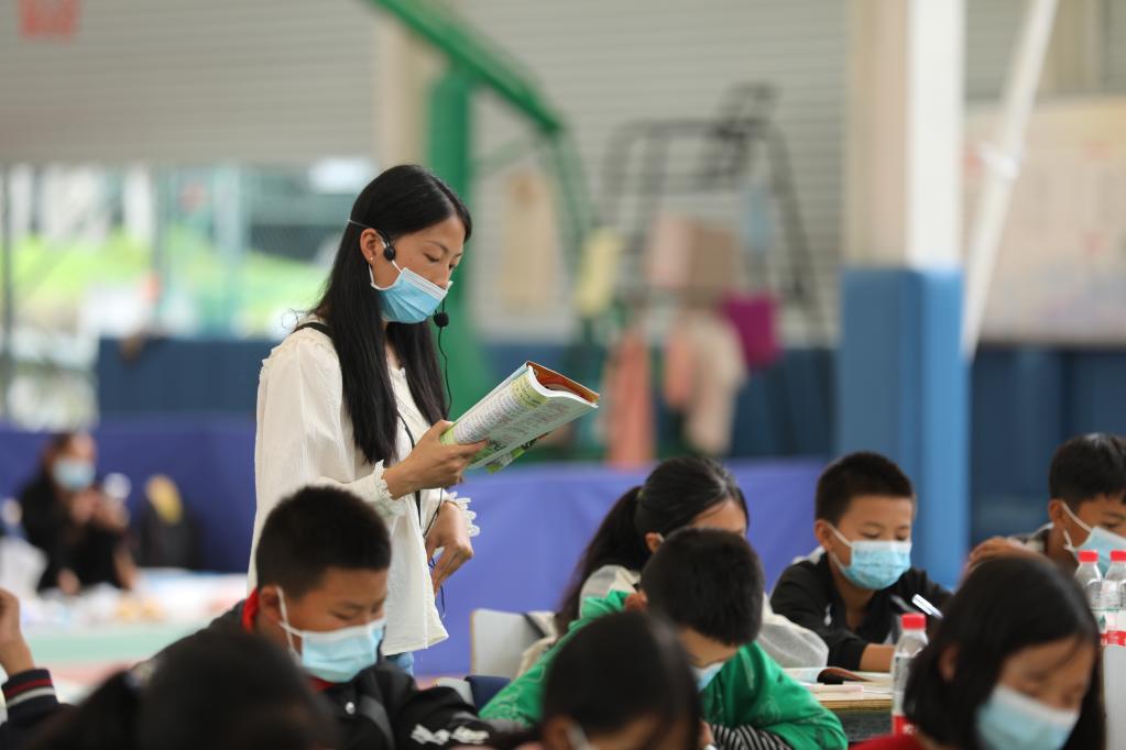 9月14日,在石棉县王岗坪乡,老师在国家能源集团大渡河大岗山公司提供的场地为学生们讲课。新华社记者 刘琼 摄