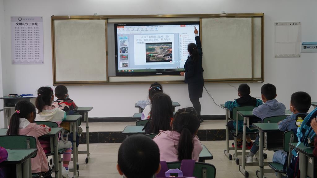 “这里条件很不错,还能用电视。”易晓红指着身前播放课件的电视说道,“今天孩子们上课明显比之前认真,可能大家和我一样,都很珍惜这眼前的一切。”