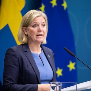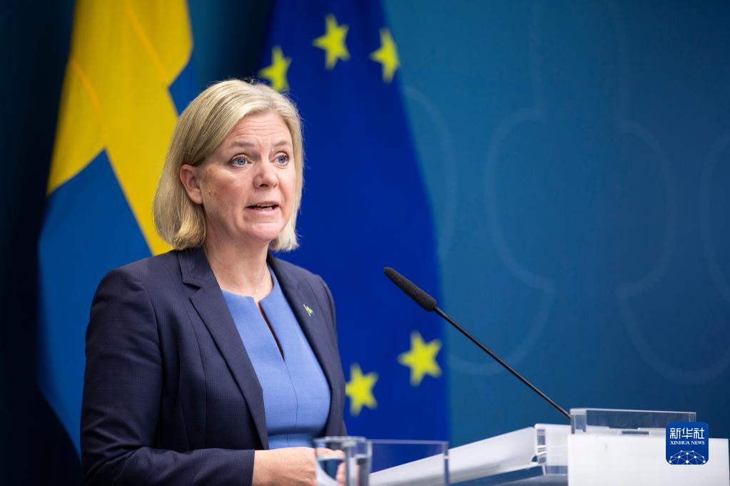 9月14日,瑞典首相安德松在斯德哥尔摩出席新闻发布会。新华社发(瑞典政府供图/宁尼·安德松 摄)