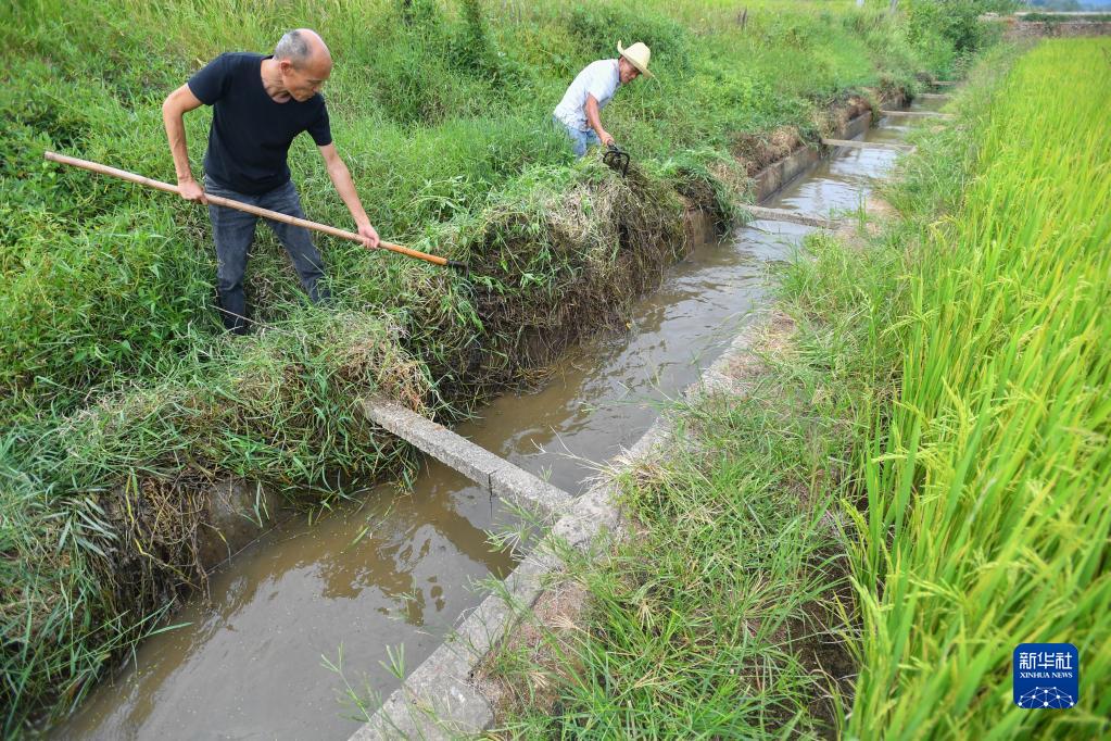 9月15日,在湘潭市雨湖区姜畲镇联映村,村民在疏浚灌渠。