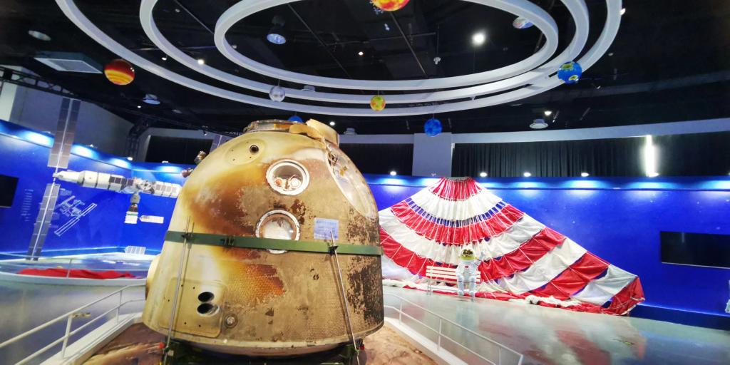 其中,神舟十三号载人飞船返回舱是首次面向公众展出,返回舱降落伞、长征三号甲运载火箭残骸等一批珍贵的航天器实物同时亮相,配合VR互动体验等形式打造沉浸式互动体验空间。展览期间还推出院士专家报告会,以及火箭制作、月球基地搭建等科学实践活动。