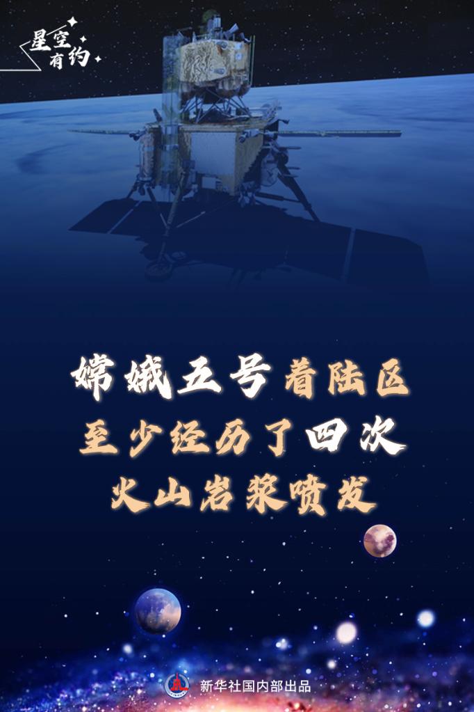 研究结果表明,嫦娥五号着陆区至少经历了四次火山岩浆喷发,厚度中值分别为230米、70米、4米、36米。进一步研究发现,该地区的岩浆喷发通量在约20亿年前的月球火山活动晚期有显著增强,增幅约2个数量级。