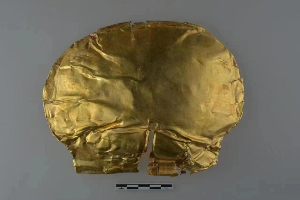 这是郑州商城遗址高等级贵族墓M2中出土的金覆面。(郑州市文物考古研究院供图)