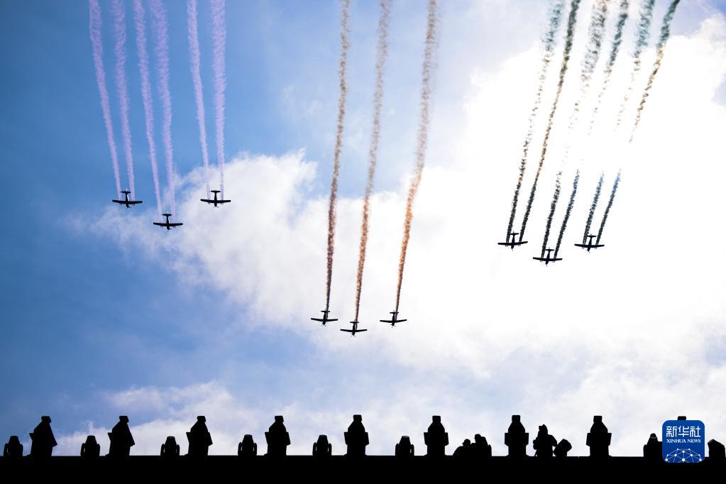 9月16日,在墨西哥首都墨西哥城,飞机编队在阅兵式上表演。