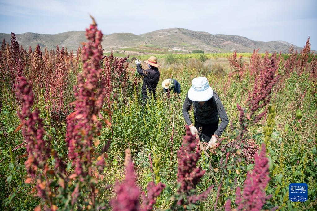 在静乐县娘子神乡南舍村,村民在田间收割藜麦(9月16日摄)。