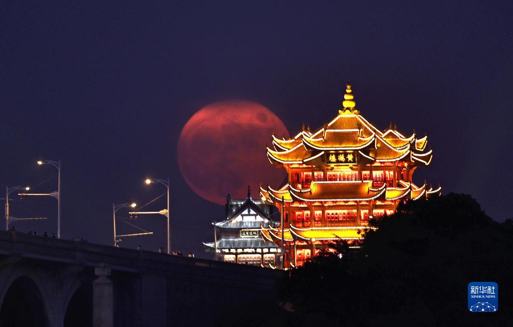 农历八月十五中秋节,一轮圆月从湖北武汉黄鹤楼后升起(9月10日摄)。