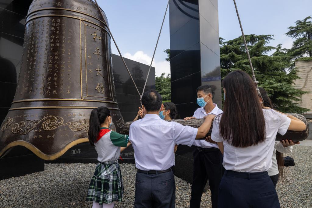 南京大屠杀幸存者既是历史的受害者,也是历史的见证人。如今,幸存者们年事已高,他们的后代接过了传承历史记忆的接力棒。当日,幸存者葛道荣、艾义英的后代来到纪念馆,撞响和平大钟。