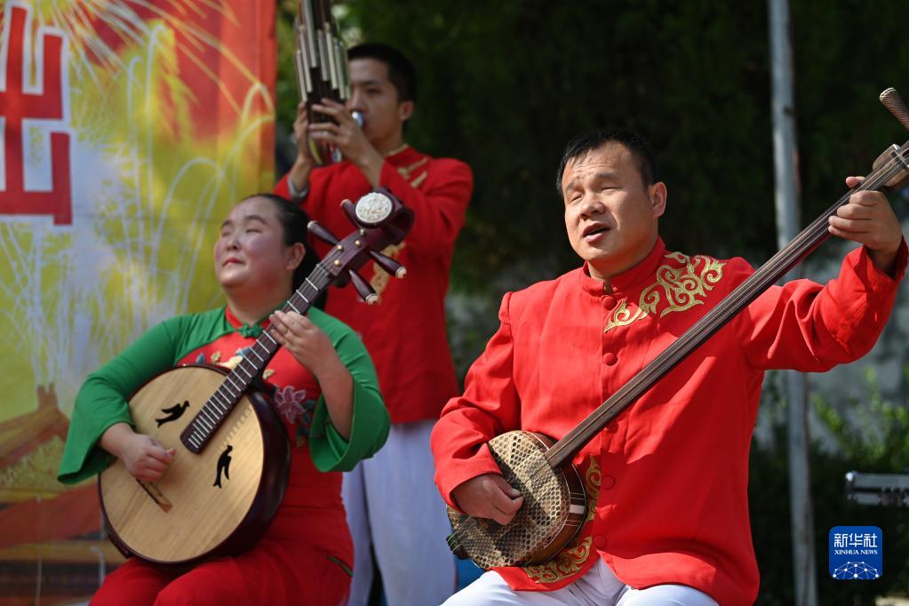 陵川县盲人曲艺宣传队在陵川县杨村镇北山村演出(9月14日摄)。