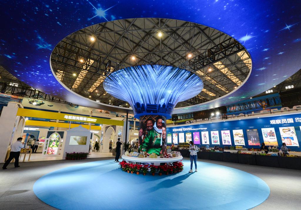 9月15日,参观者在农业科技与粮食安全国际交流合作展馆了解特色商品。新华社记者邹竞一 摄