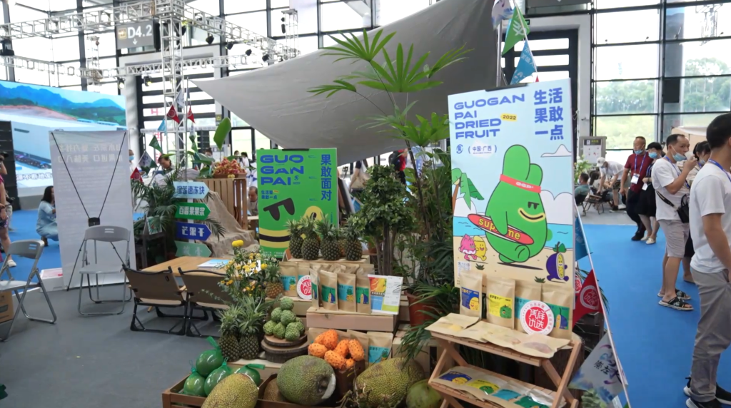 百香果、青柚、芒果、菠萝蜜,除了新鲜水果,还有各色的果脯、果干等水果制品。