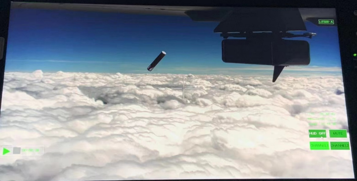 这是此次试验的投放监控实况图,图中圆柱体为下投式探空仪。(受访者供图)