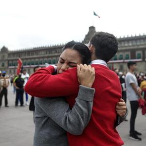 9月19日,在墨西哥首都墨西哥城,室外避险的人们相互安慰。新华社发(弗朗西斯科·卡涅多摄)
