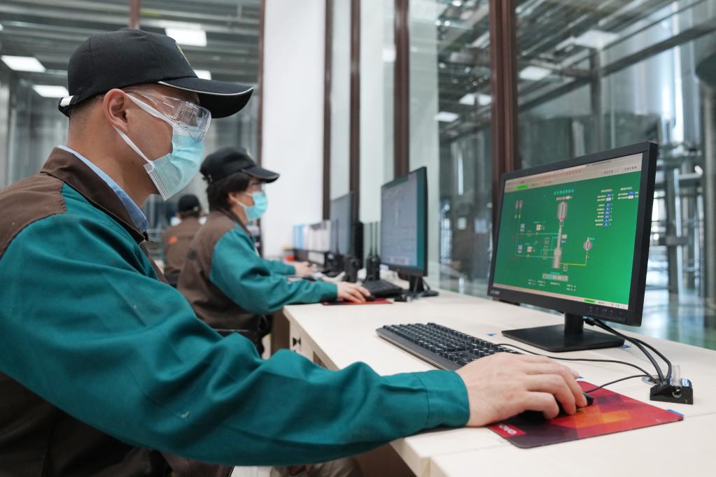 6月8日,在绥芬河综合保税区内的辛巴赫精酿啤酒有限公司工作人员在“数字车间”中控室工作。中国“最北自贸区”——中国(黑龙江)自由贸易试验区绥芬河片区坚持一手抓防疫,一手抓经济,着力打造“数字自贸试验区”,推进数字赋能。新华社记者王建威摄
