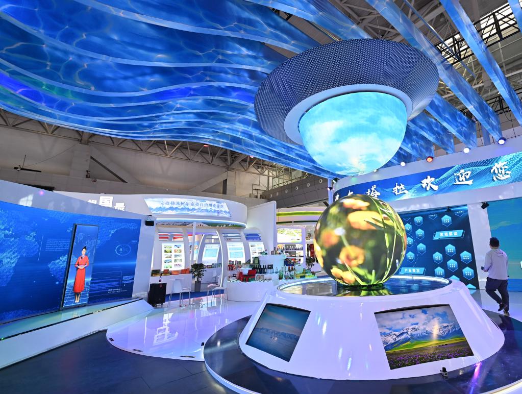 这是9月19日在新疆国际会展中心拍摄的第七届中国-亚欧博览会展厅。当日,第七届中国-亚欧博览会在新疆乌鲁木齐开幕,主题为“共商、共建、共享、合作向未来”,由商务部、外交部、中国贸促会、新疆维吾尔自治区人民政府等共同主办。新华社记者李响摄