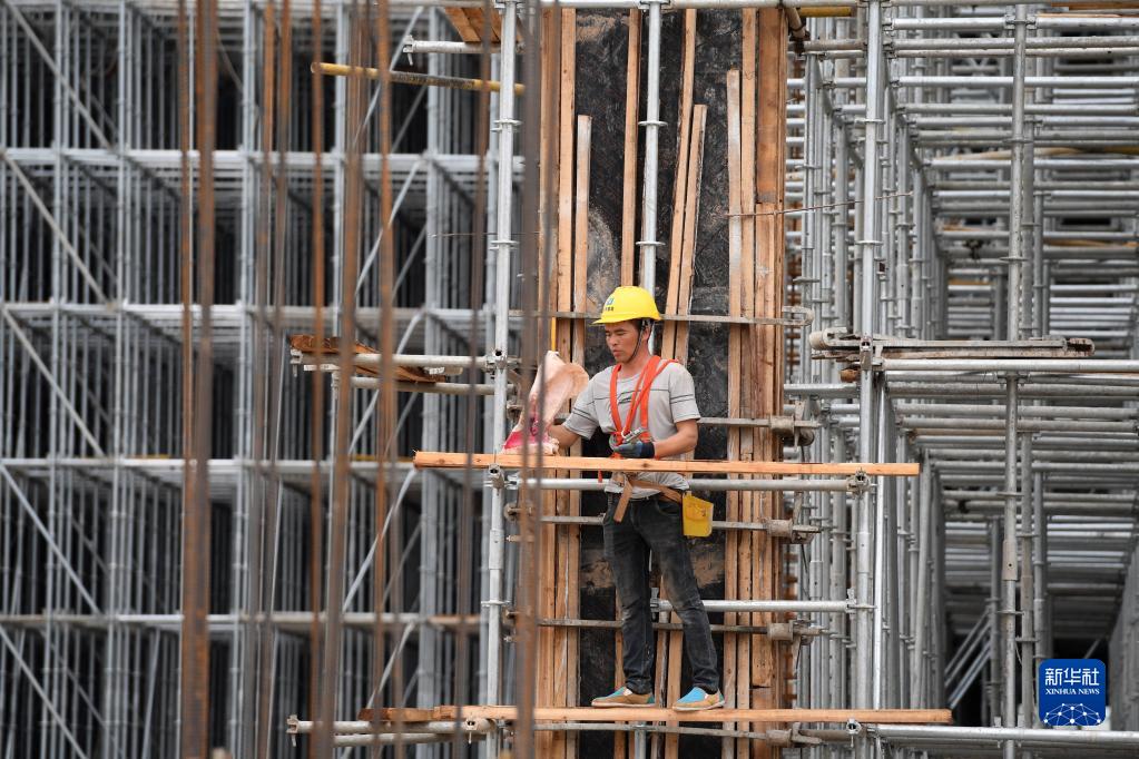 9月20日,工人在南宁国际铁路港电商物流区施工。