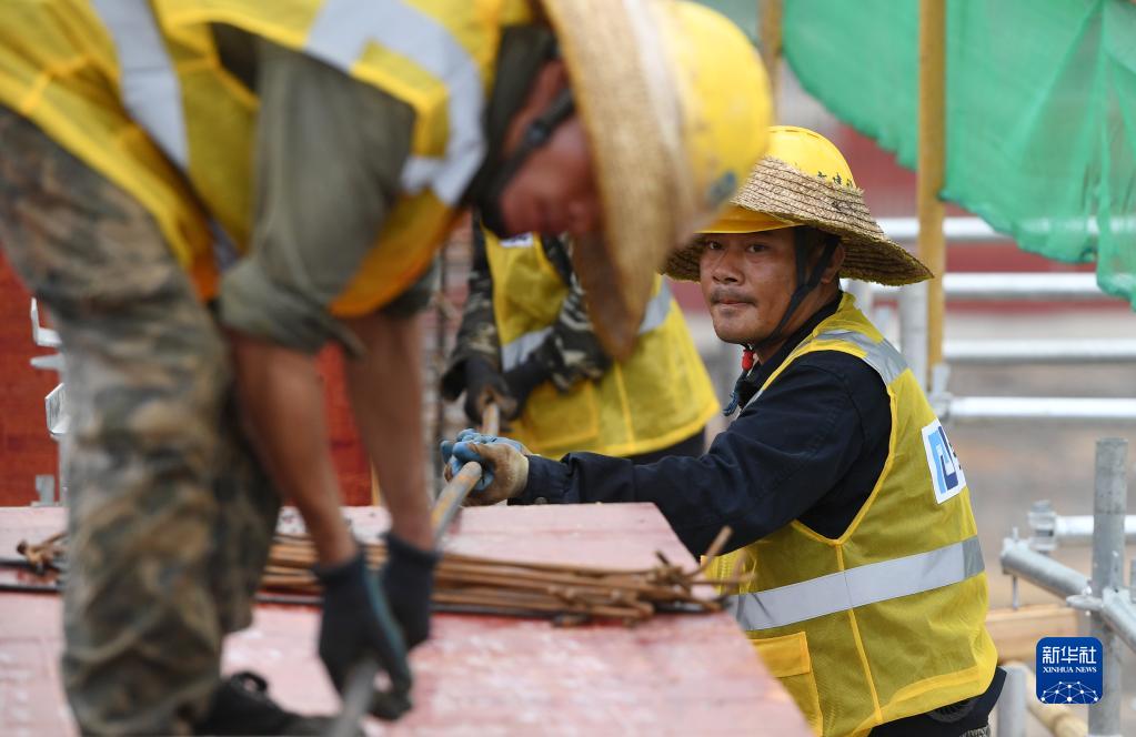 9月20日,工人在南宁国际铁路港电商物流区施工。