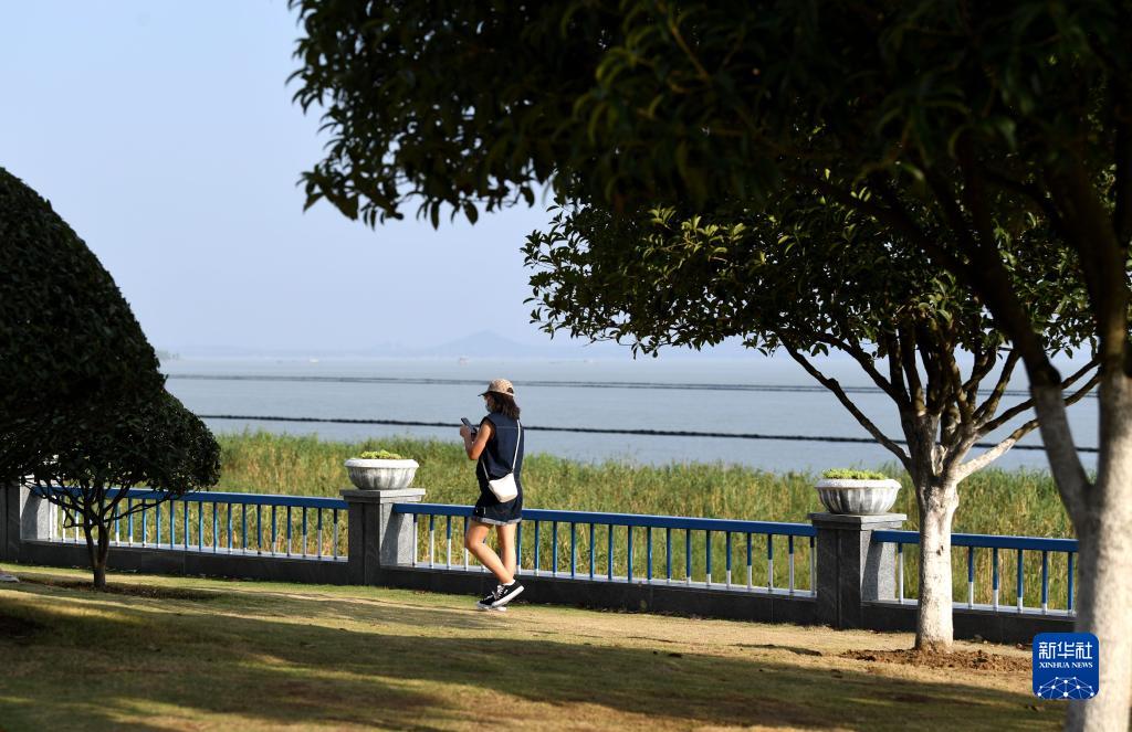 2022年9月6日,市民在巢湖岸边的公园游玩。